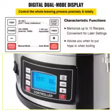 • 9.2 Gal/35 L Brewing Pot: Our all-in-one brewing system makes it simple for homebrewers to step up to all-grain brewing without a mountain of equipment and costs. The 9.2 Gal pot can brew up to 8 Gal of high-quality beer. The inner pot in contact with food is constructed of 0.02-inch-thick 304 stainless steel, handling nothing but grains. It is sure to stand up to heavy-duty use and perfect your beer recipes. An ideal solution for your beer brewing needs is right in front of you.